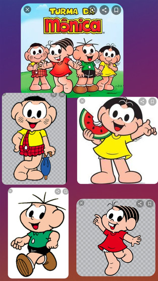 Feito pelos personagens Mônica, cebolinha, cascão e Magali.